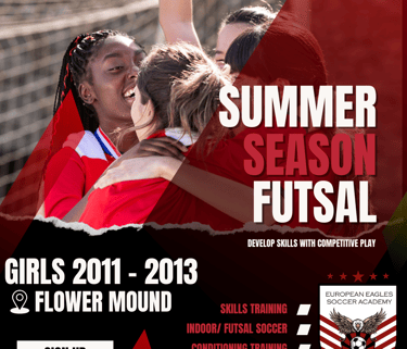 Our practice field is at Sent Church 2120 S Garden Ridge Blvd, Flower Mound, TX 75028. Throughout the program, we might have season at an indoor facility. Which will be communicated at that time.